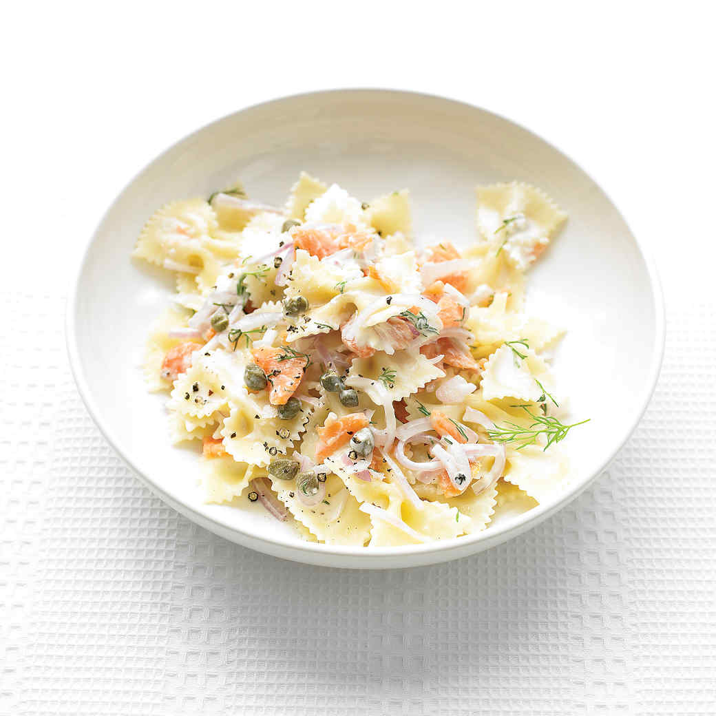 This great family recipe is thanks to Martha Stewart Recipes at https://www.marthastewart.com/315600/farfalle-pasta-with-smoked-salmon-and-cr