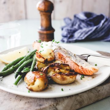 This is an easy mid-week staple dish. A simple technique, starting off with a cold fry pan to create the most delicious crispy salmon skin, which let’s face it, is the best bit! Serve with a fresh herb dressing! Prep Time • Prep time: 5 minutes • Cook time:...