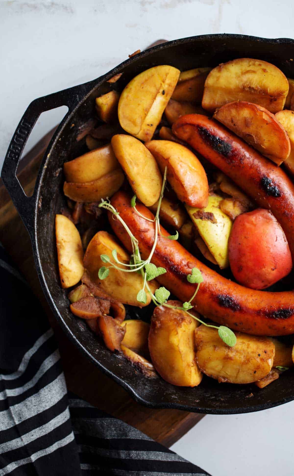 Fried Sausages and Apples Skillet meal is a two ingredient easy weeknight meal made from only smoked sausages and apples. Smoked sausages and naturally sweet apples combine for a delicious balanced bite with big flavor! Prep Time • Prep time: 5 minutes • Cook time: 30 minutes • Yield:...