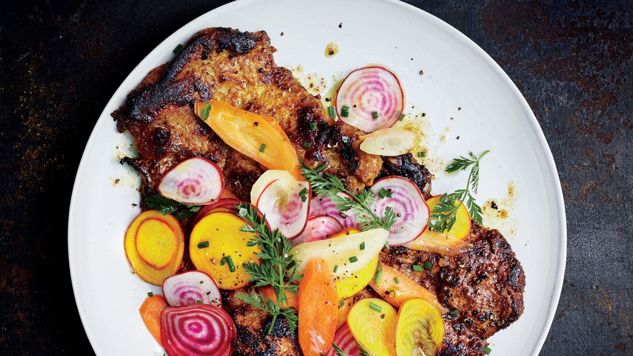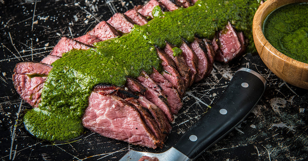 This bright and fresh chimichurri is used twice: as a sauce for the steak and as a dressing for the accompanying herb salad. Prep Time • Prep time: 20 minutes • Cook time: 1 hour & 10 minutes • Yield: Serves 4 Ingredients Chimichurri: • 1/4 cup sherry...